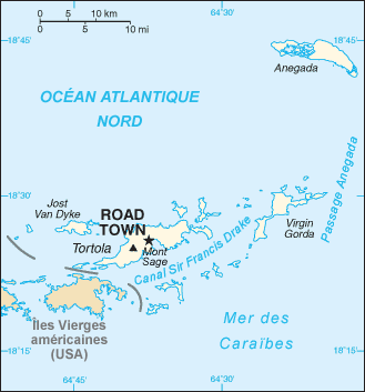 The British Virgin Islands are a group of about 50 islands in the West Indies, only 16 of which are inhabited. They are located in the Caribbean Sea, east of the U.S. Virgin Islands. The main island, Tortola, is separated from St. John in the U.S. Virgin Islands by only 2.3 kilometers. To the east, the island of Virgin Gorda lies 127 km west-northwest of the western tip of the island of Anguilla.